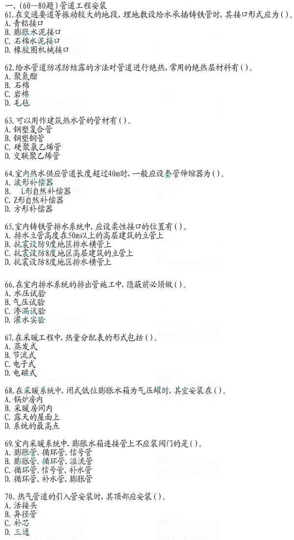 - 2025年一級(jí)造價(jià)師《安裝計(jì)量》真題答案61-70題2025-10-23