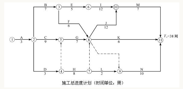 利用標號法確定關(guān)鍵線路為:1-2-5-8-10-11或A-C-G-J-M