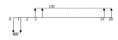 NPV=-400-400×(P/F,12%,1)+150×(P/A,12%,18)×(P/F,12%,2)
