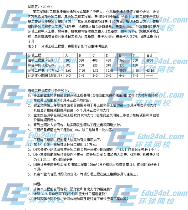 2013年造價(jià)工程師案例分析試題及答案(案例五)