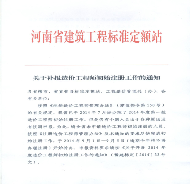 摘要 洛陽造價信息網(wǎng):補報造價工程師初始注冊工作通知