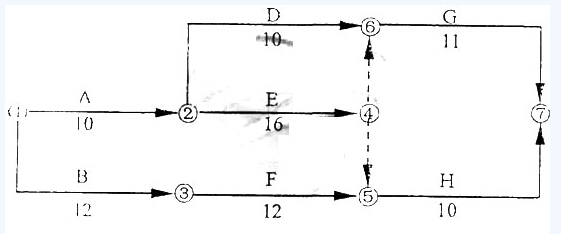 1.該施工網絡進度計劃的關鍵工作有哪些?H工作的總時差為幾天?