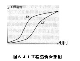 按規(guī)定的時(shí)間繪制資金使用與施工進(jìn)度的S曲線。每一條S曲線都對(duì)應(yīng)某一特定的工程進(jìn)度計(jì)劃。由于在工程網(wǎng)絡(luò)進(jìn)度計(jì)劃的非關(guān)鍵線路中存在許多有時(shí)差的工作,因此,S曲線(投資計(jì)劃值曲線)必然包括在由全部工作均按最早開(kāi)始時(shí)間(Es)開(kāi)始和全部工作均按最遲開(kāi)始時(shí)間(LS)開(kāi)始的曲線所組成的“香蕉圖”內(nèi),如圖6.4.1所示。