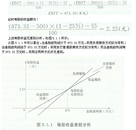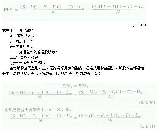 每股收益分析是利用每股收益的無差別點進行的。所謂每股收益的無差別點,是指每股收益不受融資方式影響的銷售水平。根據(jù)每股收益無差別點,可以分析判斷不同銷售水平下適用的資本結構。每股收益EPS的計算式如下: