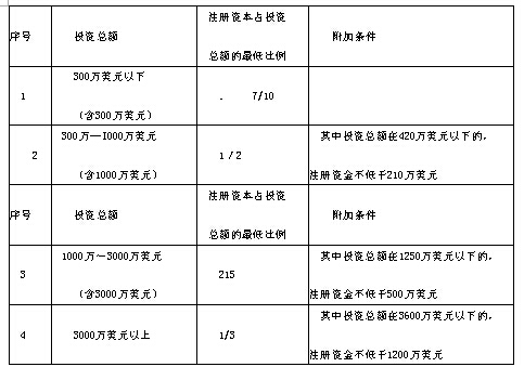 按照有關要求,外商投資企業(yè)的注冊資本應與生產(chǎn)經(jīng)營規(guī)模相適應,其注冊資本占投資總額的最低比例見表5.1.2。
