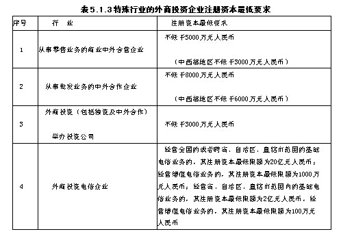 對一些特殊行業(yè)的外商投資企業(yè),注冊資本的特殊要求見表5.1.3。
