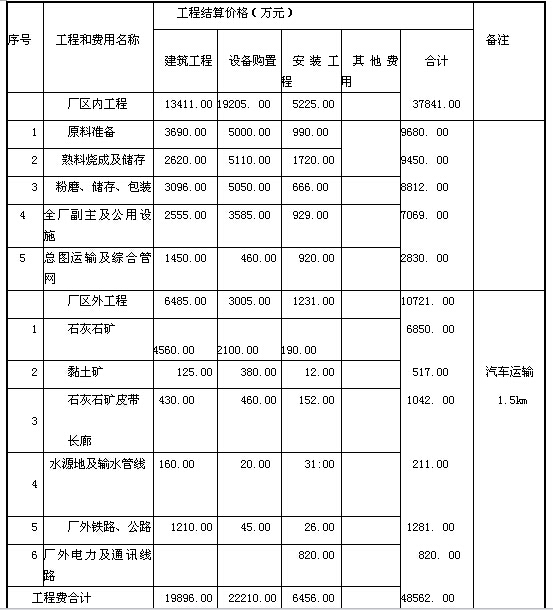 (2)擬建工程石灰石礦采用2.5km皮帶長廊輸送,類似工程采用具有同樣輸送能力的1.5km皮帶長廊。