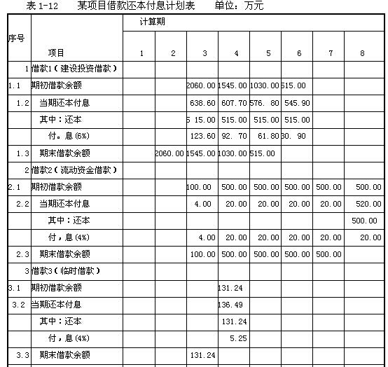 流動(dòng)資金借款在生產(chǎn)經(jīng)營(yíng)期內(nèi)只計(jì)算每年所支付的利息,本金在運(yùn)營(yíng)期末一次性償還。短期借款利息的計(jì)算與流動(dòng)資金借款利率相同,短期借款本金的償還按照隨借隨還的原則處理,即當(dāng)年借款盡可能于下年償還。