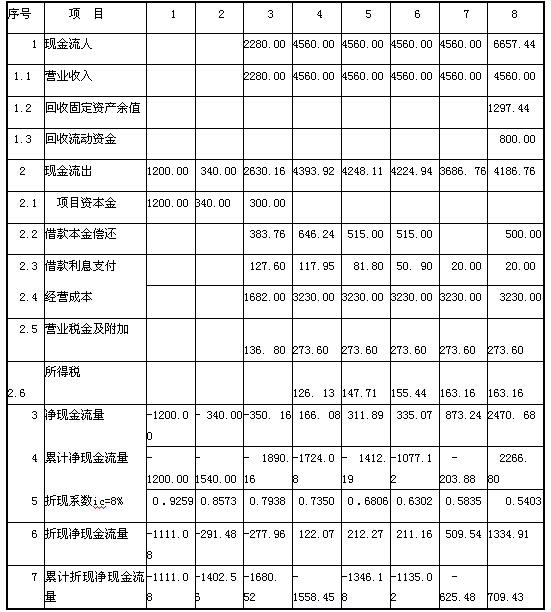 5.流動(dòng)資金為800萬(wàn)元,在項(xiàng)目的運(yùn)營(yíng)期末全部收回。