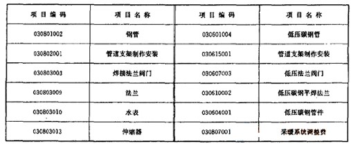 管網(wǎng)部分分部分項(xiàng)工程量清單項(xiàng)目的統(tǒng)一編碼見(jiàn)下表: