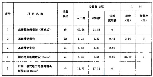 6.表中數(shù)據(jù)為計(jì)算該動(dòng)力安裝工程的相關(guān)費(fèi)用: