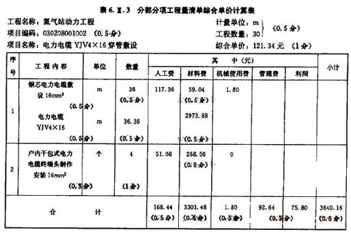 2.假設(shè)電力電統(tǒng)YJV4×16穿管敷設(shè)的清單工程量為30m.依據(jù)上述相關(guān)費(fèi)用數(shù)據(jù)計(jì)算配電箱(落地式安裝)和電力電纜YJV4×16穿管敷設(shè)二個(gè)項(xiàng)目的綜合單價(jià),并分別填入答題紙表6.Ⅲ。2和表6.Ⅲ。3
