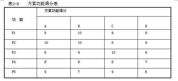 將各方案的各功能得分分別與該功能的權(quán)重相乘,然后匯總即為該方案的功能加權(quán)