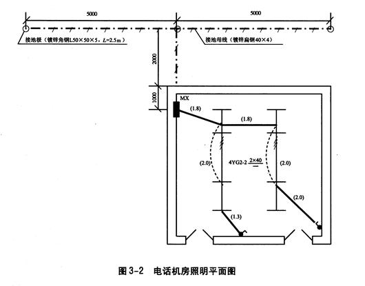 2.管線均為鍍鋅電線管咖20沿磚墻、混凝土頂板內(nèi)暗配,頂管標高為4m;管內(nèi)穿阻燃絕緣導線ZRBVl.5mm2;