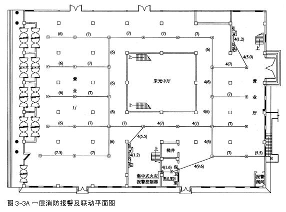 1.火災(zāi)自動報警系統(tǒng)線路由一層保衛(wèi)室消防集中報警主機引出,沿水平、垂直線穿焊接鋼管沿內(nèi)、頂板暗敷,敷設(shè)高度為離地3m。