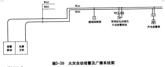 2.WA1為報警(聯(lián)動)二總線,采用NH - RVS -2×1.5, WD1為電源二總線采用NH - BV -2.5。