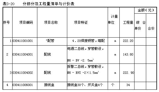 分部分項工程量清單見表3-20。