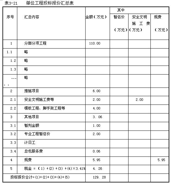 該單位工程投標報價匯總表,見表3-21。