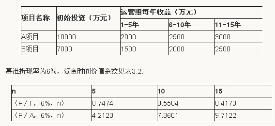 2.不考慮建設(shè)期的影響,分別列式計算A、B兩個項目總收益的凈現(xiàn)值。