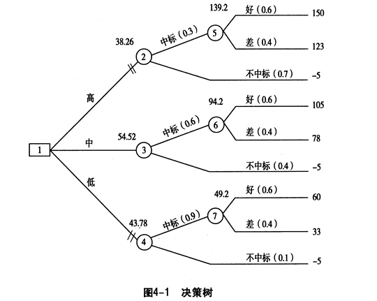 2.畫出決策樹,標明各方案的概率和利潤,如圖4-1所示。