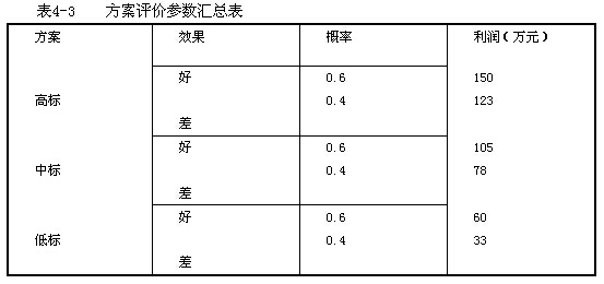 五是期望利潤與實際報價中利潤的區(qū)別。期望利潤是綜合考慮各投標方案中標概率和不中標概率所可能實現(xiàn)的利潤,其數(shù)值大小是決策的依據(jù),但其并不是決策方案實際報價中的利潤。因此,決策方案報價應(yīng)以估算成本加上相應(yīng)投標方案的計算利潤,而不是估算成本加期望利潤。