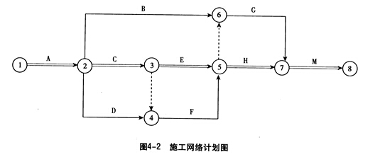 4.如果該工程的施工網(wǎng)絡(luò)計(jì)劃如圖4-2所示,在不改變?cè)摼W(wǎng)絡(luò)計(jì)劃中各工作邏輯關(guān)系的條件下,壓縮哪些關(guān)鍵工作可能改變關(guān)鍵線路?壓縮哪些關(guān)鍵工作不會(huì)改變關(guān)鍵線路?為什么?
