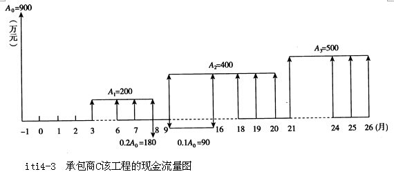 答:承包商C該工程的現(xiàn)金流量圖如圖4-3所示。
