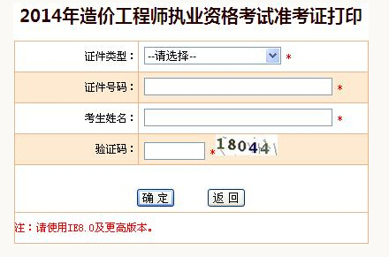 2014年造價(jià)工程師考試準(zhǔn)考證打印入口