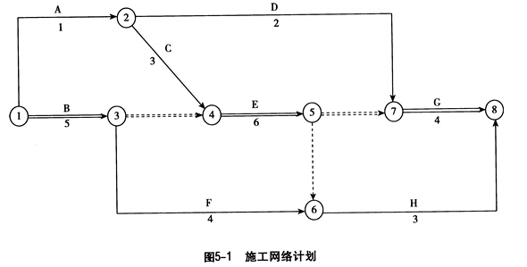 某廠(甲方)與某建筑公司(乙方)訂立了某工程項目施工合同,同時與某降水公司訂立了工程降水合同。甲乙雙方合同規(guī)定:采用單價合同,每一分項工程的實際工程量增加(或減少)超過招標文件中工程量的15%以上時調(diào)整單價;工作B、E、G作業(yè)使用的施工機械甲一臺,臺班費為600. 00元/臺班,其中臺班折舊費為360. 00元/臺班;工作F、H作業(yè)使用的施工機械乙一臺,臺班費為400. 00元/臺班,其中臺班折舊費為240. 00元/臺班。施工網(wǎng)絡計劃如圖5-1所示(單位:天),圖中:箭線上方字母為工作名稱,箭線下方數(shù)據(jù)為持續(xù)時間,雙箭線為關鍵線路。假定除工作F按最遲開始時間安排作業(yè)外,其余各項工作均按最早開始時間安排作業(yè)。