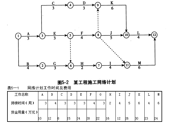 某建筑公司(乙方)與某建設(shè)單位(甲方)簽訂了建筑面積為2100m2的單層工業(yè)廠房的施工合同,合同工期為20周。乙方按時(shí)提交了施工方案和施工網(wǎng)絡(luò)計(jì)劃,如圖5―2和表5-1所示,并獲得工程師代表的批準(zhǔn)。該項(xiàng)工程中各項(xiàng)工作的計(jì)劃資金需用量由乙方提交,經(jīng)工程師代表審查批準(zhǔn)后,作為施工階段投資控制的依據(jù)。