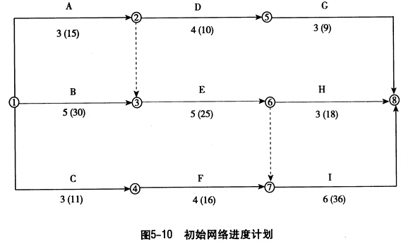 1.請(qǐng)對(duì)圖5-10所示的進(jìn)度計(jì)劃做出相應(yīng)的調(diào)整,繪制出調(diào)整后的施工網(wǎng)絡(luò)進(jìn)度計(jì)劃,并指出關(guān)鍵線路。