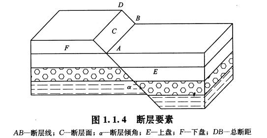 ?、跀鄬印鄬邮菐r體受力作用斷裂后,兩側(cè)巖塊沿斷裂面發(fā)生顯著相對位移的斷裂構造。斷層一般由四個部分組成,如圖1.1.4所示。