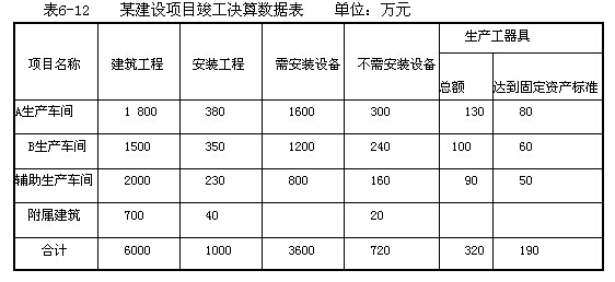 某建設(shè)單位擬編制某工業(yè)生產(chǎn)項(xiàng)目的竣工決算。該建設(shè)項(xiàng)目包括A、B兩個(gè)主要生產(chǎn)車間和C、D、E、F四個(gè)輔助生產(chǎn)車間及若干附屬辦公、生活建筑物。在建設(shè)期內(nèi),各單項(xiàng)工程竣工決算數(shù)據(jù)見(jiàn)表6-12。工程建設(shè)其他投資完成情況如下:支付行政劃撥土地的土地征用及遷移費(fèi)500萬(wàn)元,支付土地使用權(quán)出讓金700萬(wàn)元;建設(shè)單位管理費(fèi)400萬(wàn)元(其中300萬(wàn)元構(gòu)成固定資產(chǎn));地質(zhì)勘察費(fèi)80萬(wàn)元;建筑工程設(shè)計(jì)費(fèi)260萬(wàn)元;生產(chǎn)工藝流程系統(tǒng)設(shè)計(jì)費(fèi)120萬(wàn)元;專利費(fèi)70萬(wàn)元;非專利技術(shù)費(fèi)30萬(wàn)元;獲得商標(biāo)權(quán)90萬(wàn)元;生產(chǎn)職工培訓(xùn)費(fèi)50萬(wàn)元;報(bào)廢工程損失20萬(wàn)元;生產(chǎn)線試運(yùn)轉(zhuǎn)支出20萬(wàn)元,試生產(chǎn)產(chǎn)品銷售款5萬(wàn)元。