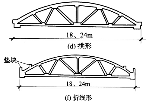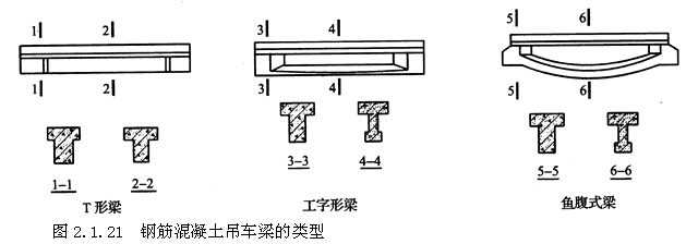 元寶式吊車(chē)梁、魚(yú)腹式吊車(chē)梁、空腹魚(yú)腹式吊車(chē)梁等,如圖2.1.21所示。吊車(chē)梁可用非