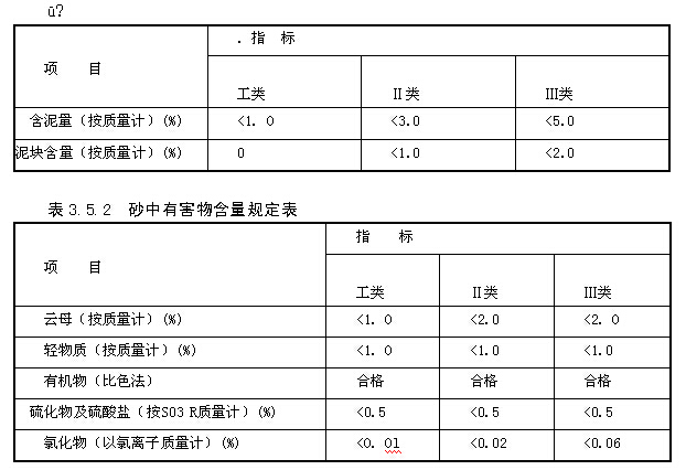 在《建筑用砂》GB7T 14684中,將砂按技術(shù)要求分為工類、Ⅱ類、Ⅲ類o I類宜用于強(qiáng)度等級大于C60的混凝土;Ⅱ類宜用于強(qiáng)度等級為C30~C60及有抗凍、抗?jié)B或其他要求的混凝土;Ⅲ類宜用于強(qiáng)度等級小于C30的混凝土。