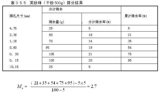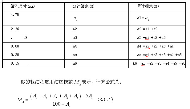 表3.5.3 累計(jì)篩余與分計(jì)篩余的關(guān)系