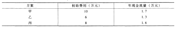 ①甲、乙、丙:因?yàn)槌跏伎衫觅Y本為18萬(wàn)元,三種方案的初始費(fèi)用總和超過了18萬(wàn)元,