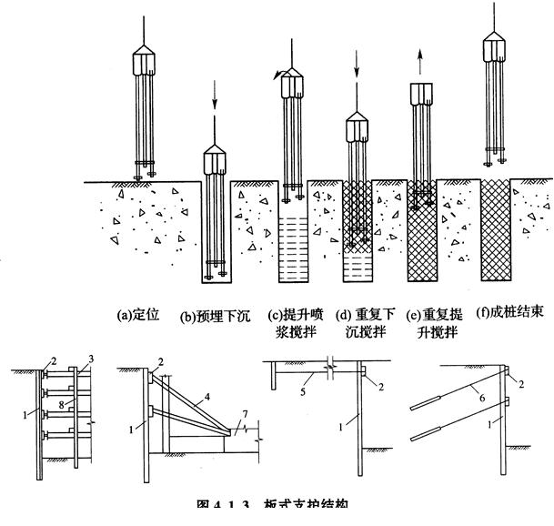 基坑(槽)支護結(jié)構(gòu)的主要作用是支撐土壁,此外,鋼板樁、混凝土板樁及水泥土攪