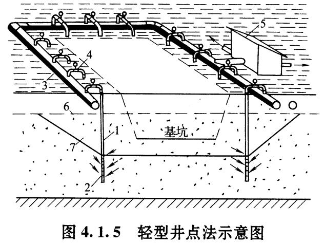 降水方法可分為重力降水(如積水井、明渠等)和強制降水(如輕型井點、深井泵、