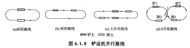 線(圖4.1.8c)o大環(huán)形路線的優(yōu)點是一個循環(huán)能完成多次鏟土和卸土,,從而減少了鏟運