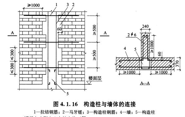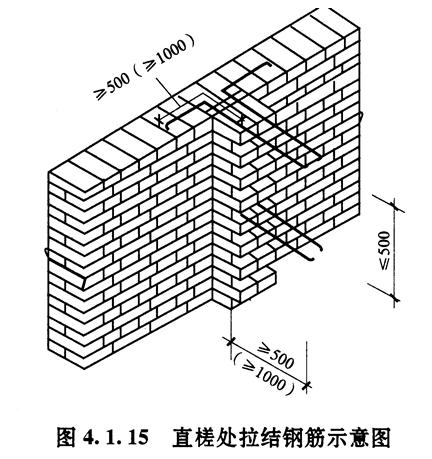 1)每120mm墻厚放置lg 3)埋人長度從留槎處算起每邊均不應(yīng)小于500mm,對抗震設(shè)防烈度6度、7度的地