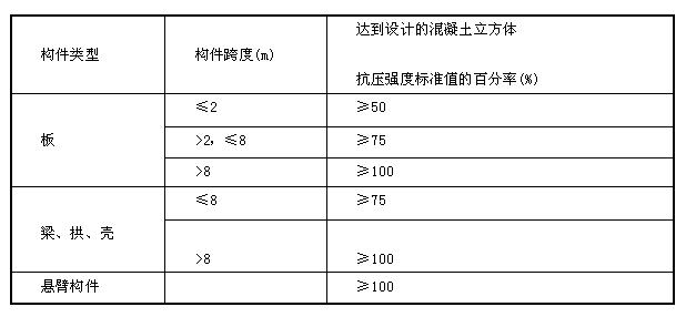 ?、俚啄<捌渲Ъ懿鸪龝r(shí)的混凝土強(qiáng)度應(yīng)符合設(shè)計(jì)要求;當(dāng)設(shè)計(jì)無具體要求時(shí),混凝土