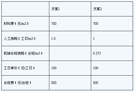方案二直接工程費(fèi)=700 1.0×100 0.375×800=1100(元/m3)