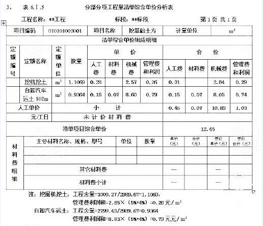 3、計算挖基礎(chǔ)土方的工程量清單綜合單價,把綜合單價組成和綜合單價填入答題紙表6.1.3“工程量清單綜合單價分項表”中。