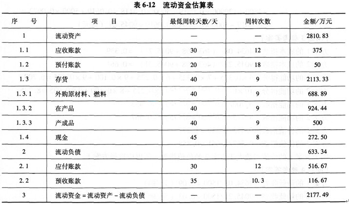 2.用分項(xiàng)詳細(xì)估算法估算擬建項(xiàng)目的流動(dòng)資金,編制流動(dòng)資金投資估算表。