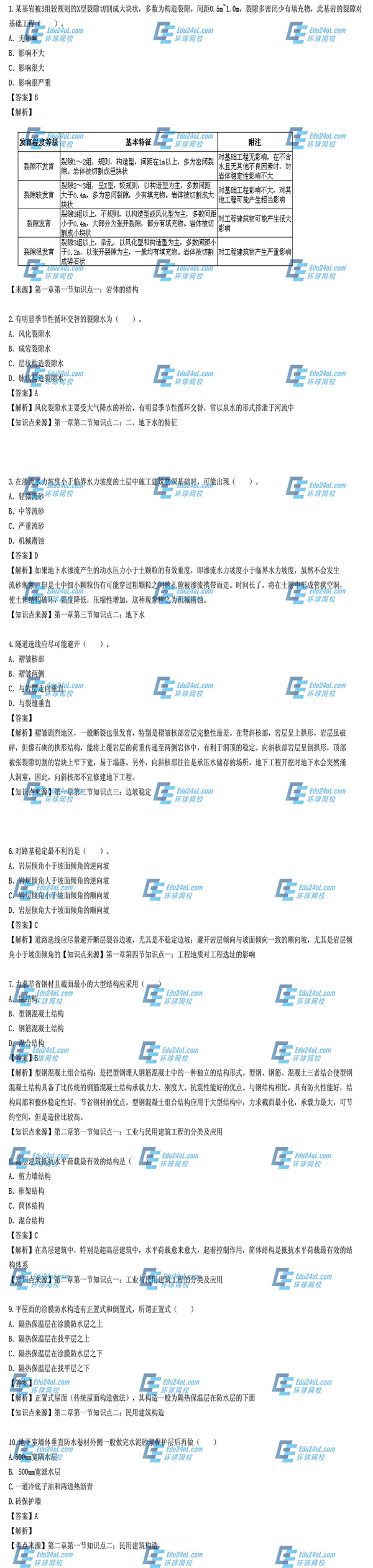 2014年造價工程師《土建工程》單選題(部分)