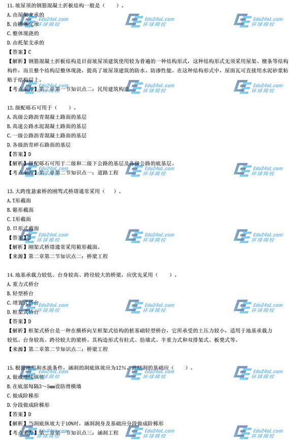 2014年造價工程師《土建工程》試題(1-15)