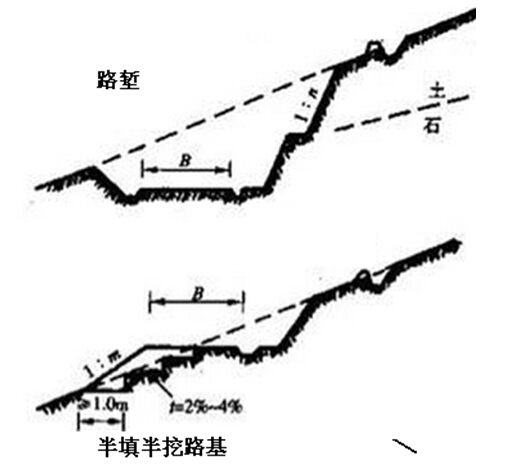 分析:半填半挖路基,分期修建和改建公路加寬時,新舊路基填方邊坡的銜接處,應開挖臺階。高速公路、一級公路,臺階寬度一般為2m。