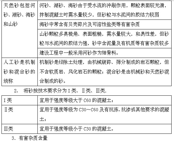 砂按細(xì)度模數(shù)分為粗、中、細(xì)三種規(guī)格:3.7~3.1為粗砂,3.O~2.3為中砂,2.2~1.6為細(xì)砂。