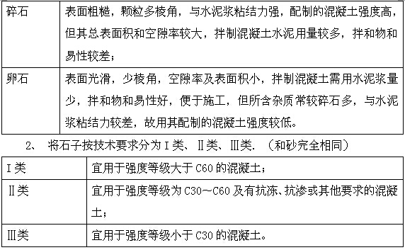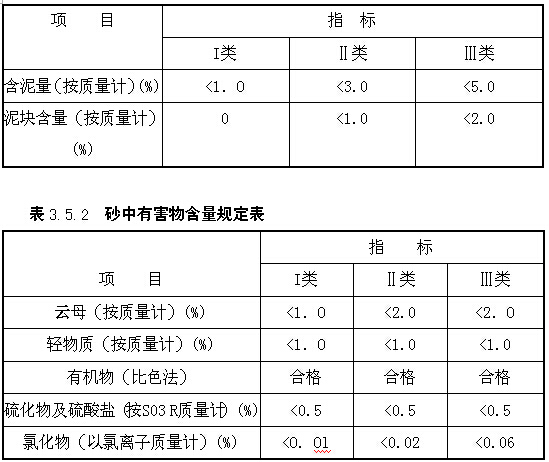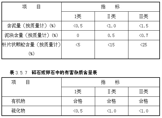 表3.5.6 破石或卵石中的含泥量和泥塊含量及針片狀顆粒含量表